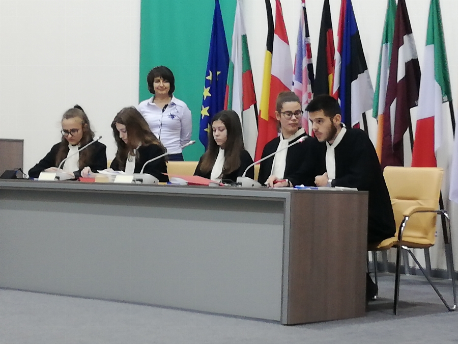 Александра Ченалова, Виктория Атанасова, Дарина Бозова, Мария Кьосева и Мартин Христов от езиковата гимназия бяха съдии с поддръжката на съдиите от Районен съд - Стара Загора, Дарина Стоянова и Женя Иванова.