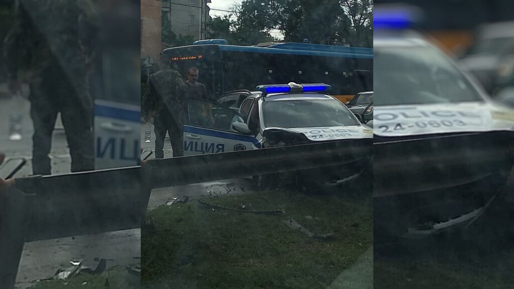 При случая са потърпевши двама служители на реда, а водачът на другия автомобил е избягал.