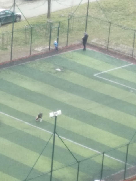 В обществените мрежи се появиха фотоси на притежател на куче, който разхожда домашния си любим в нова футболна площадка. Това ядоса жителите на столичния квартал " Люлин ", където се намира и площадката.