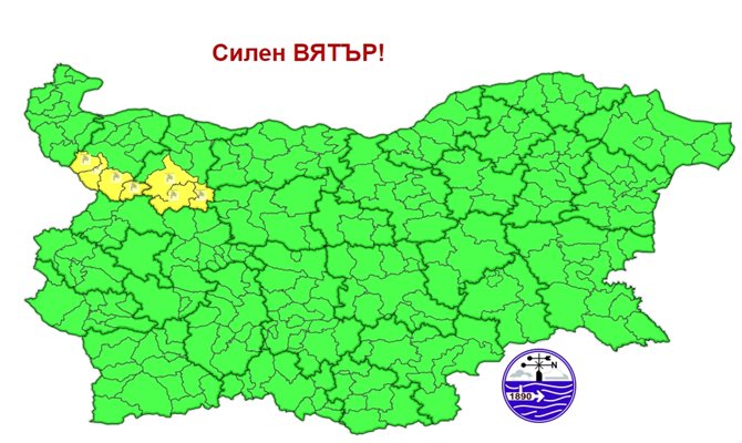 В сряда жълт код за увеличаване на югозападния вятър е в действие за областите Монтана и Враца - за планинските им елементи на моменти вятърът ще се усилва до плевел.
