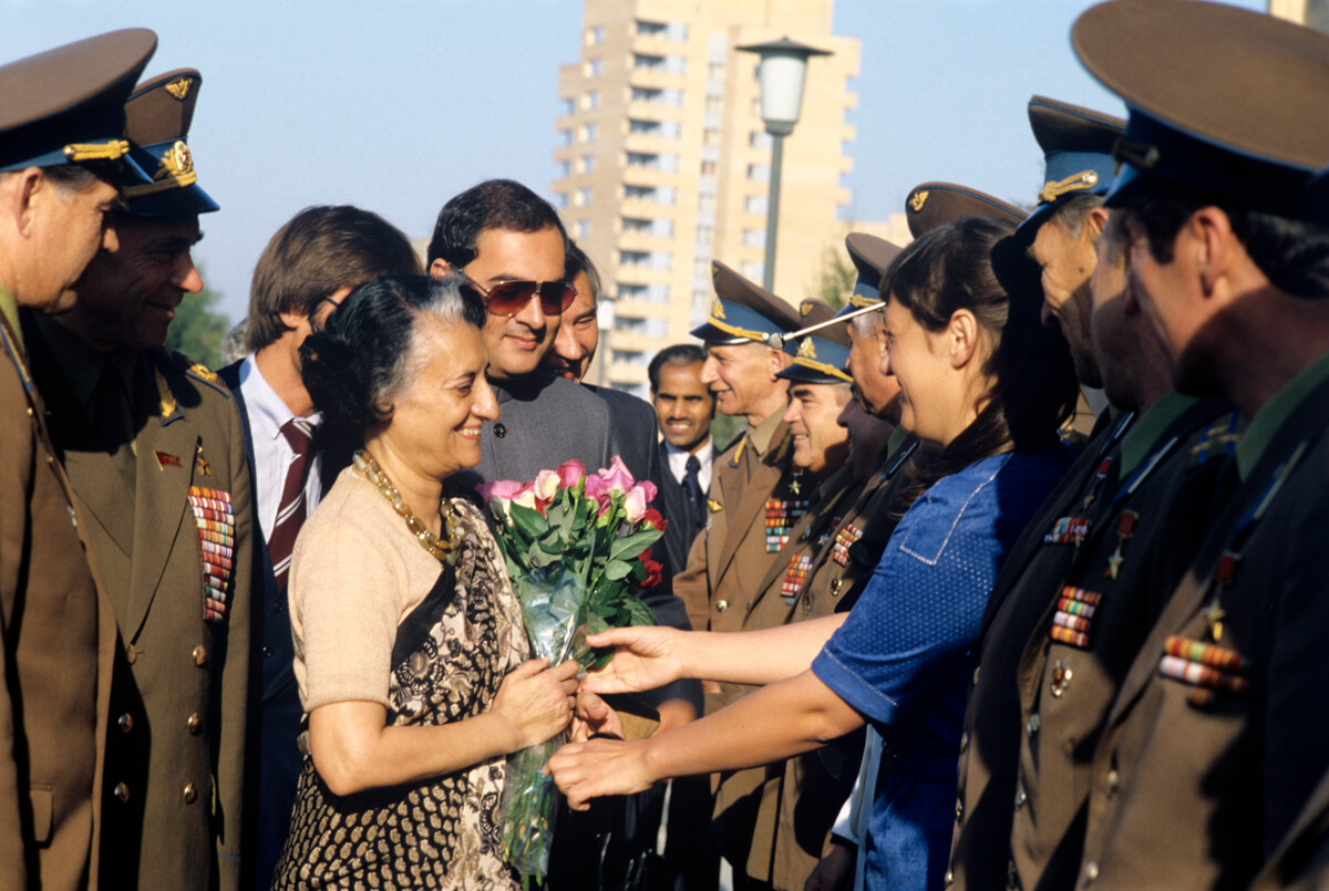 Индира Ганди на среща със руски космонавти в Звездното градче, Московска област, 1982 година