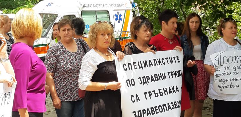 В Стара Загора - експертите по медицински грижи от Университетската многопрофилна болница излязоха още веднъж на митинг. Те упорстват за почтено възнаграждение и възстановяване на изискванията на труд.