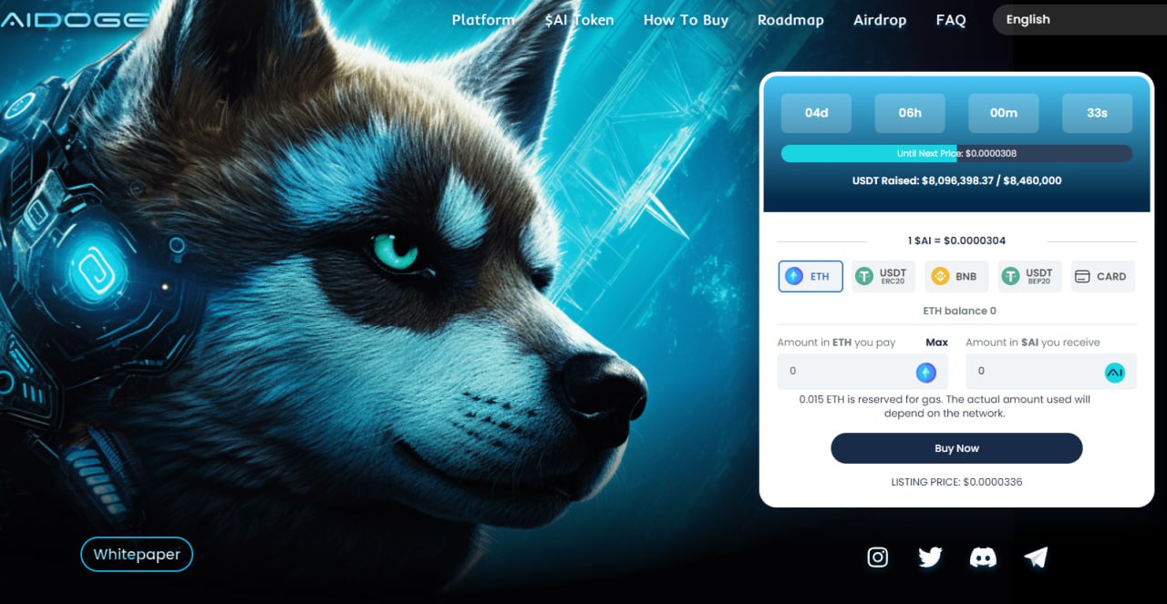AiDoge навлиза в света на криптовалутите с гръм и тропот, както и с огромен капацитет за напредък. Тази меме криптовалута съумя да притегли доста внимание и средства, като досега е събрала над $8 милиона от предварителната си продажба. Остават броени дни до края на този стадий, като листванията на AiDoge на централизираните крипто тържища се чакат в третото тримесечие на годината.