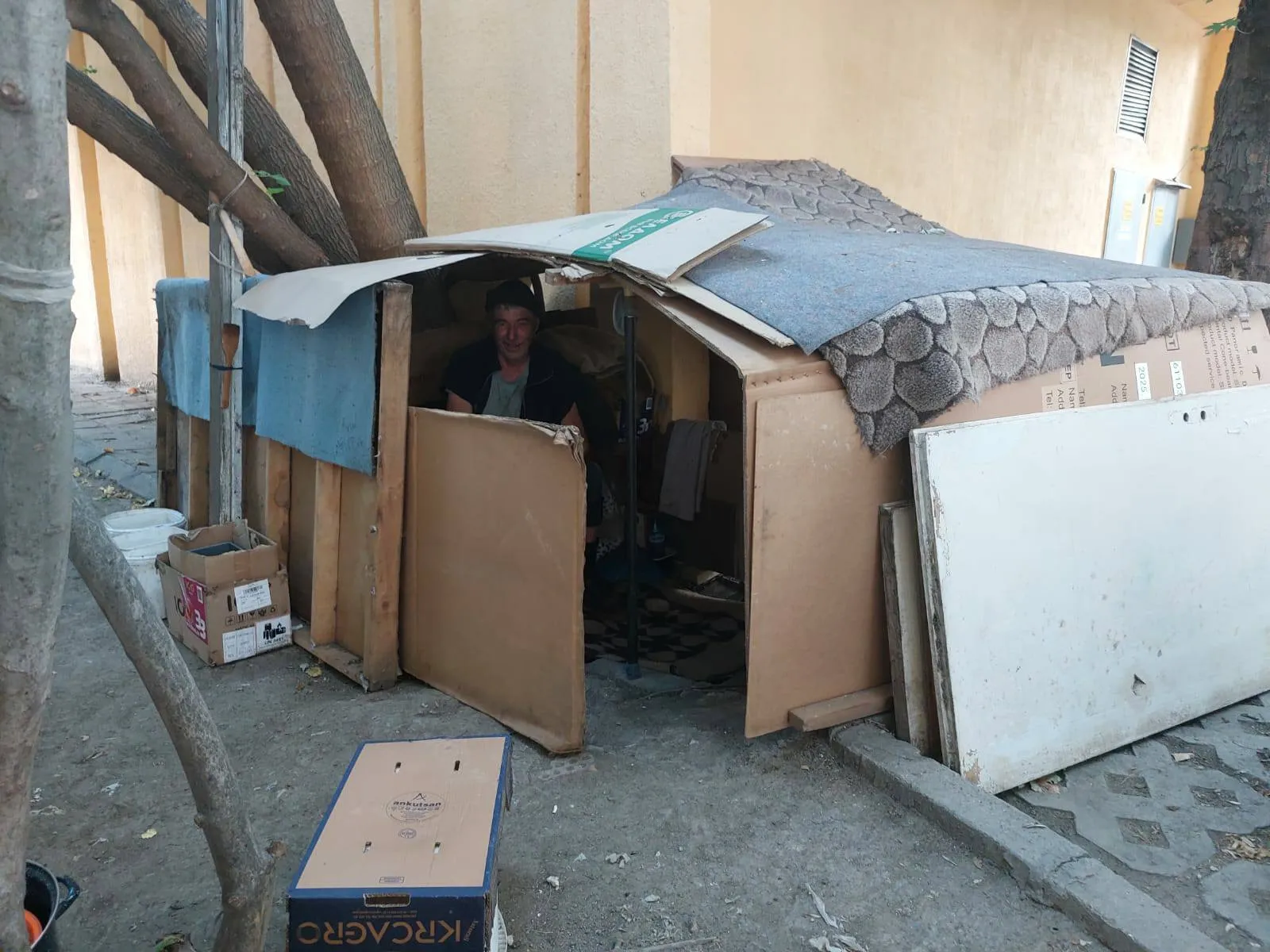 Мъж живее от години в картонена къщичка на улицата в Пловдив СНИМКИ