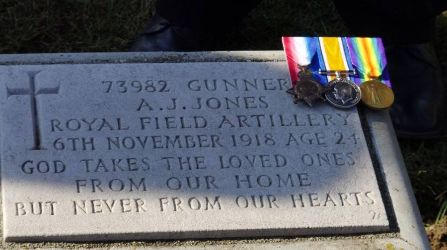 Ейбрахам Дж. Джоунс , артилерист, е умрял на 24 години единствено дни преди края на войната от инфлуенца в Солун. Семейството му скоро научава къде тъкмо е заровен, тъй че през днешния ден, наред с Н.Пр. Ема Хопкинс, дипломат на Англия у нас, военното аташе на посолството и капелан от Британската войска, беше и Дейвид Джоунс, праплеменник на починалия. " През войната Англия и България са били врагове, само че скръбта ни по починалите е обща и не трябва да повтаряме грешките, довели до този спор, " сподели Хопкинс.