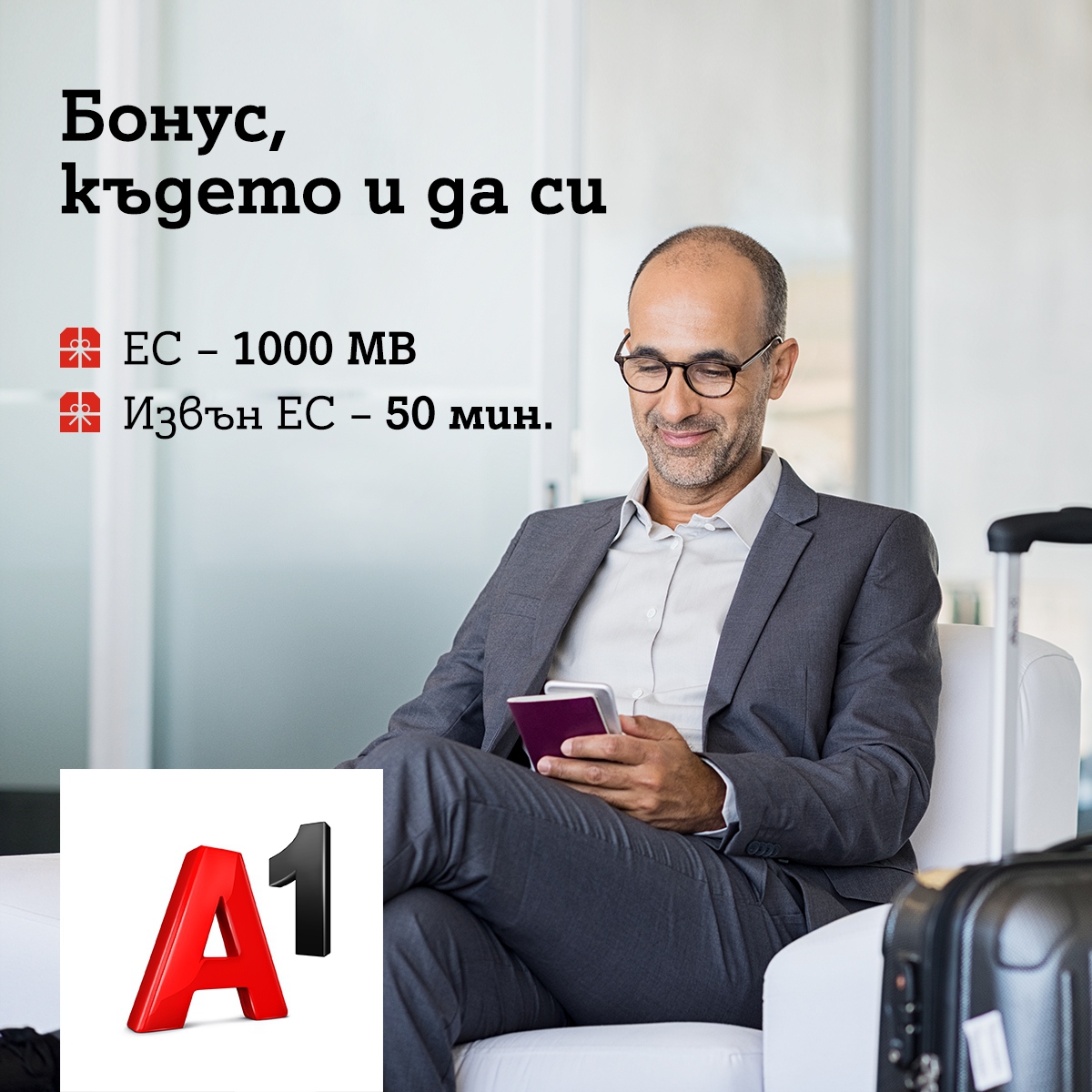 На българите в чужбина А1 подарява 1000 MВ мобилен интернет в роуминг в Европейския съюз. Клиентите на абонаментен проект ще получат информативен SMS за акцията. За да ги задействат, би трябвало да отговорят на този SMS с текст OK. Абонатите, които се намират отвън Европейски Съюз, ще получат 50 безвъзмездни минути за диалози. Активацията на този пакет ще се случва още веднъж с утвърдителен SMS. Валидността на спомагателните мегабайти и минути е 30 дни, като времето стартира да тече след приемането на осведомителния SMS за акцията. Клиентите на А1 в роуминг могат да чакат уведомителните SMS от началото на идната седмица.
