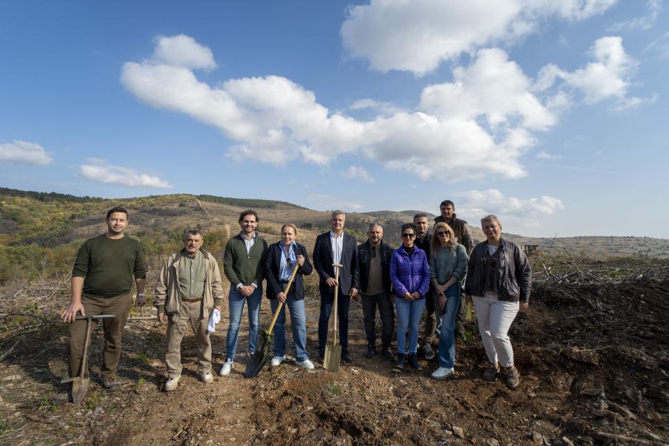 В знак на последователност и партньорство общината и Нестле България си размениха лопати, поставяйки началото на възобновяване на 65 декара опожарени гори в местността „ Седми километър “
