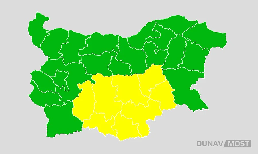 Предупреждението визира областите Пазарджик, Пловдив, Смолян, Кърджали, Хасково, Стара Загора, Сливен и Ямбол.