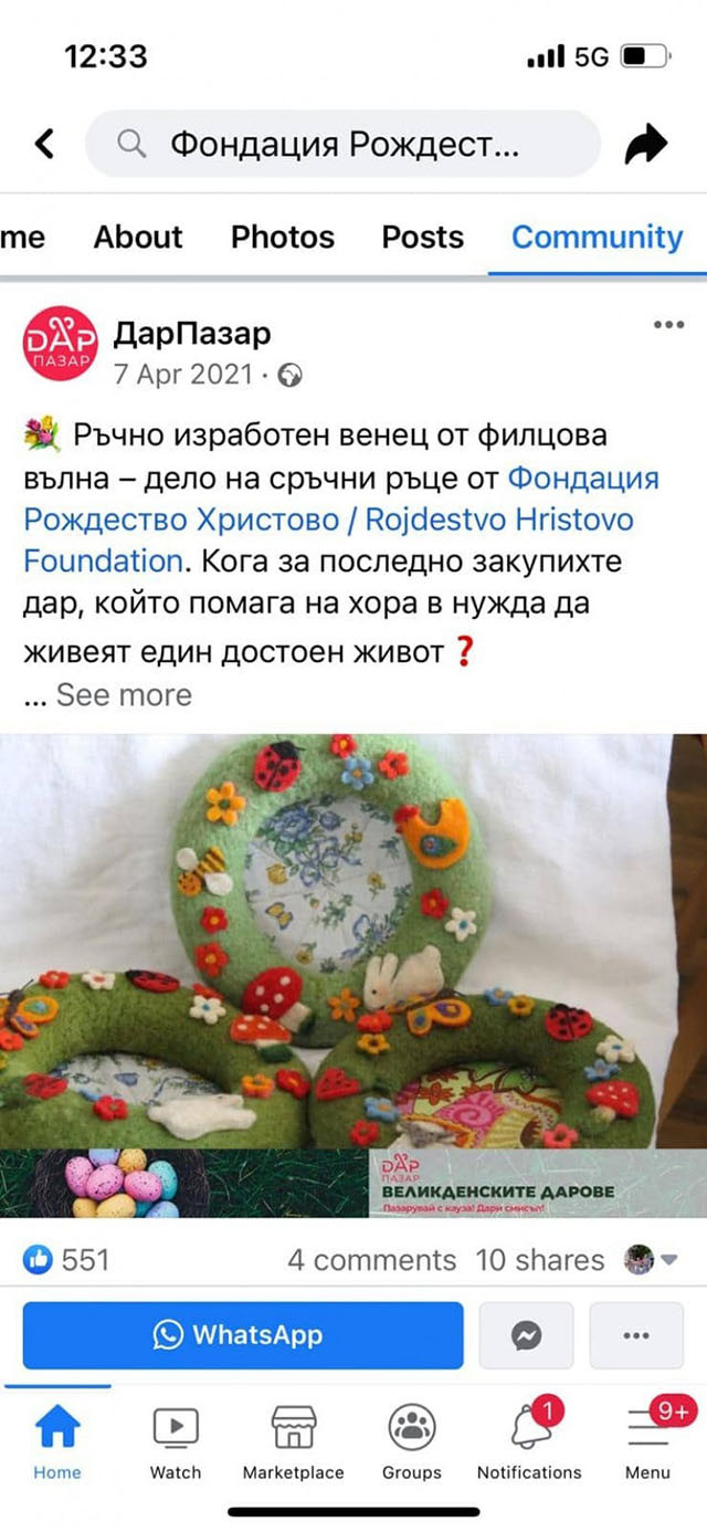 Изработката на вълнени дарове е от „ ДарПазар “, а при инспекция на контактите им излиза наяве, че са дружество на Фондация „ Рождество Христово “, мощно рекламирани от Америка за България.