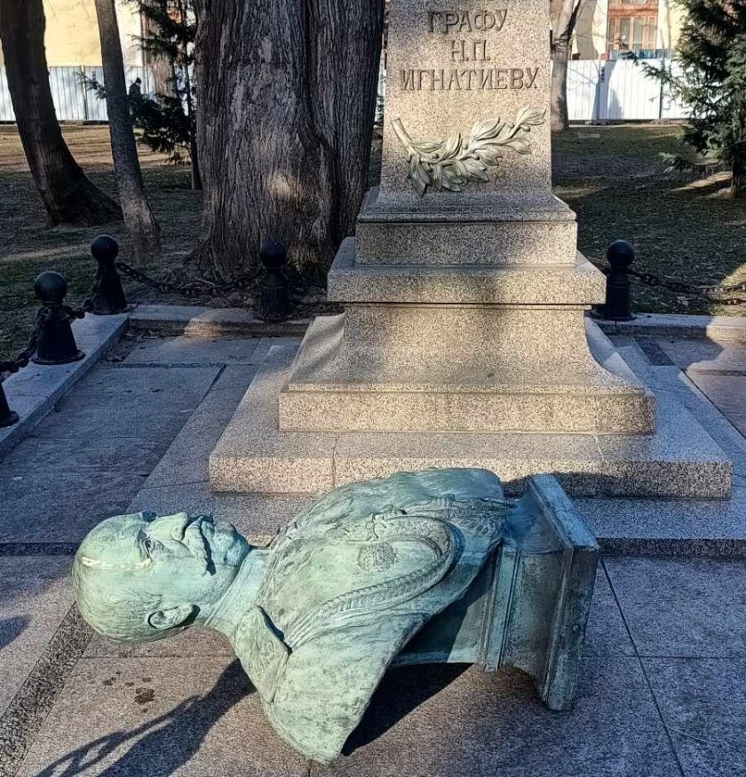 Вандали изтръгнаха фигурата на граф Игнатиев от бюст-паметника му във