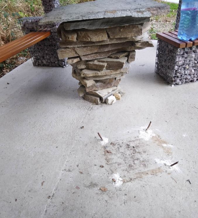 Мария Д. споделя фотоси, на които се вижда новооблагородения ъгъл за отдих с заслон и маса, станал обект на хулиганската демонстрация Едно от столчетата, сложени на мястото, липсва. Жената, дала публичност за обстановката, добавя, че това се случва " още веднъж ".