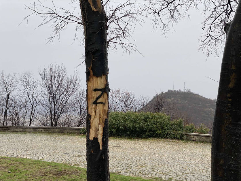 След скалите на Бунарджика, Z- вандалите посегнаха и на дървета на хълма