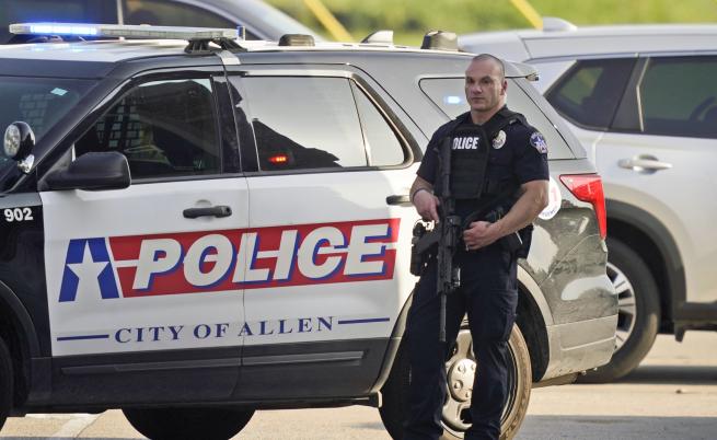е бил погубен от служител на реда, откакто разкрил огън пред търговски център в град Алън, Тексас, заяви на конференция началникът на локалната полиция.