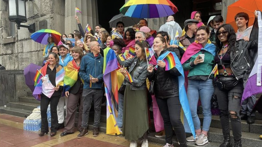 Камбаните бият от църквата “Св. Марко ”, група хора стоят начело, а събралите се на прайда дават отговор с подсвирквания и крясъци “секс, секс ”. Един съперник на прайда е задържан.
