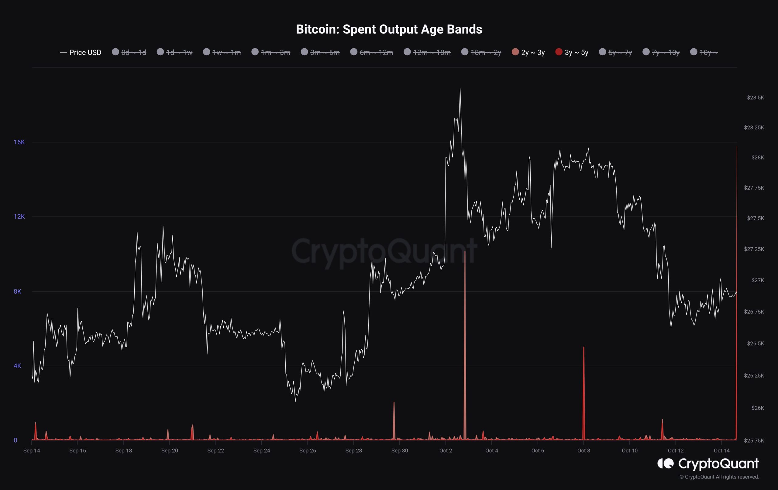 Междувременно се наблюдаваше удивително придвижване на по-стари BTC . Наскоро бяха преместени повече от 16,000 BTC на възраст сред две и пет години. Транзакции с подобен мащаб и възраст са релативно редки в мрежата на Биткойн и това събитие притегли доста внимание.