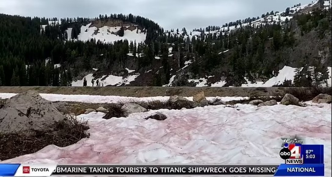 Въпреки че в календара публично е лято, планините на Юта към момента са покрити със пласт сняг. Вниманието на локалните поданици и туристите обаче беше привлечено не от това, а от необичайния цвят на снега: наподобява, като че ли някой е разпръснал върху снега розови, жълти и червени бои.