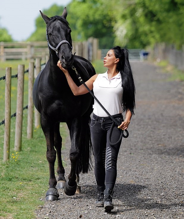 41-годишната някогашна футболна муза се наслаждаше на спокоен ден в конюшната с обичаното си животно, а по-късно прекара известно време с него на разходка.