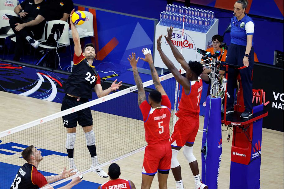 Въпреки визовите си проблеми мъжкият народен тим на Куба завоюва първия си мач от шампионата във втората спортна седмица във Волейболната Лига на нациите. Воденият от Хесус Анхел Лопес отбор обърна и се наложи над Германия с 3:1 (19:25, 25:18, 25:22, 25:21) в среща, играна този следобяд пред едвам към 300 фенове в зала " Белградска Арена " в сръбската столица.