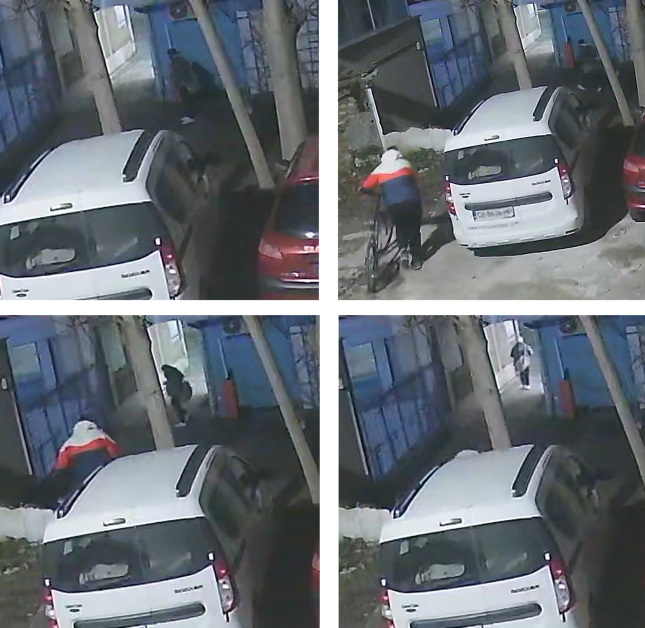 Крадците са двама, на първа фотография се вижда по какъв начин единият работи, на втора фотография се вижда и другият, който изчаква на разстояние.