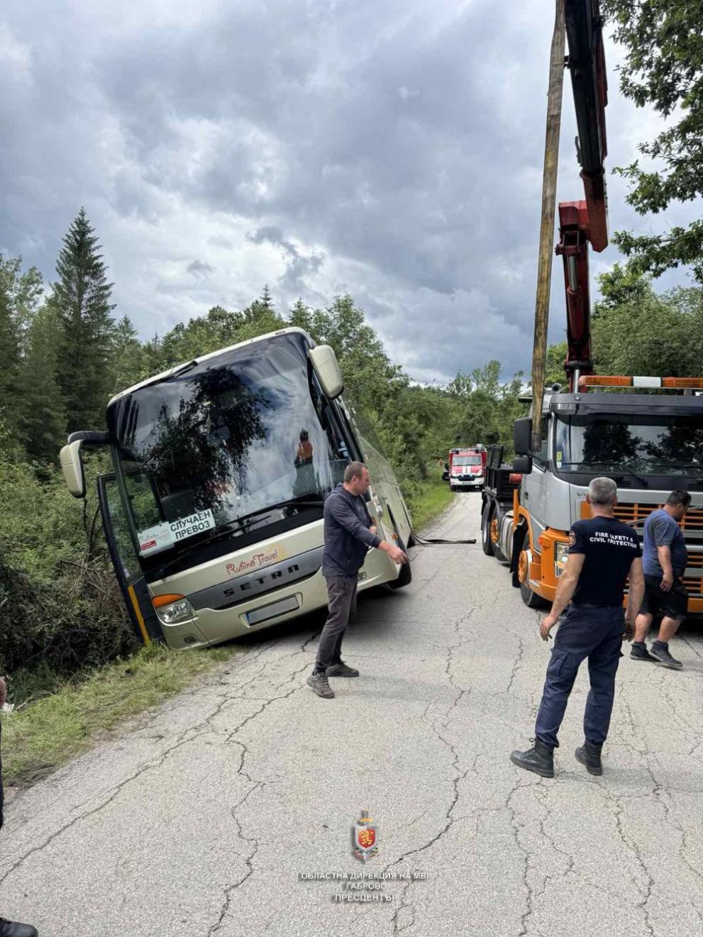 Варненски рейс с 31 пасажери е излязъл отвън пътното платно по пътя за резервата " Боженци ", като се е наклонил рисково. Инцидентът е станал през днешния ден следобяд, като сега пътят Донино - Боженци е затворен, оповестиха от Областната дирекция на Министерство на вътрешните работи в Габрово.