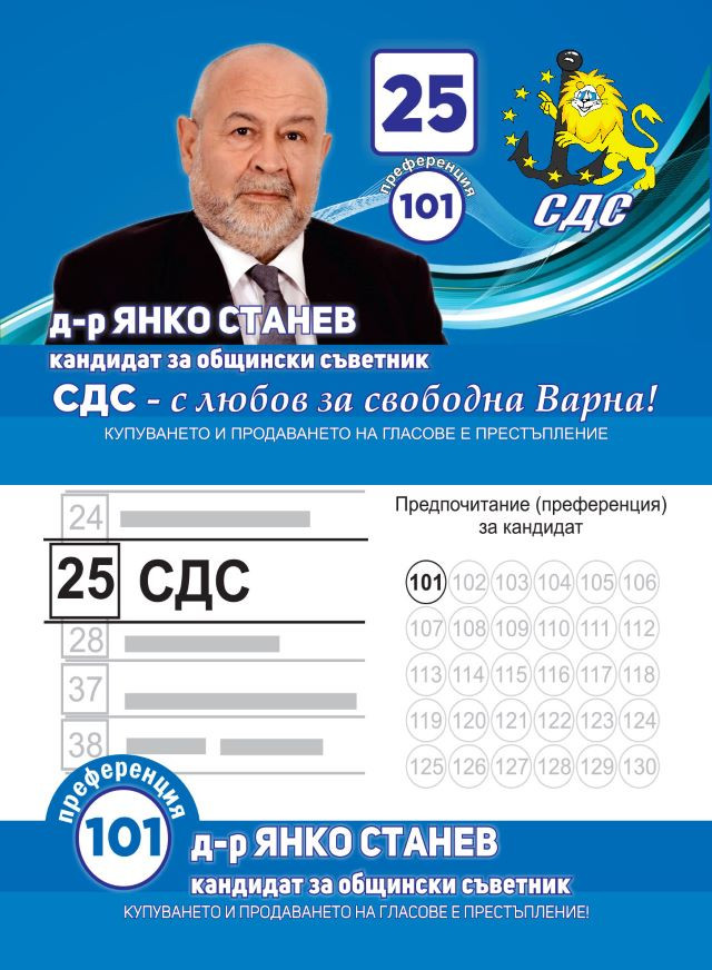 - Кандидатите от синята листа са определени на правилата, които изповядваме – висок персонален и политически професионализъм. Това са честни хора, само че не са наивни. Имаме група на младежите и група на старейшините, представители на всички региони, защото те са най-близо до хората. Имаме представители на секторите, в които считаме да развиваме политики, а точно топфинансисти, инженери с научни трофеи, лекари с потвърдени достижения, учители, отдали живота си на децата ни, обществени специалисти, спортни деятели, създатели. Всички наши претенденти са дейни в своята сфера, наясно са с проблемите на Варна, нямат потребност от акомодация и когато бъдат определени за общински съветници, могат да стартират ефикасна работа незабавно. А цялата листа е екпертният екип на тези, които ще бъдат определени. Съюз на демократичните сили обичайно търси вота на сините гласоподаватели със лична листа за общински съветници. Ние сме дали оценка за ръководството на Варна и считаме, че посоката, в която се развива градът, е вярна. Но има нужда от повишение на темпото, а и контролът и прозрачността да са възприемчиви на по-високо равнище. Това е допустимо единствено в случай че се съблюдава дисциплинираност и доста професионални познания и управнически умения. А това значи ръководство без безсмислени диспути, диспути единствено поради политическата агитация и липса на действителни градивни оферти, а мятане на тези и агитация, в част от които напряко наднича комунизъм. Популизмът по умря „ дайте да дадем “ ми звучи като тезиси на конгрес на Българска комунистическа партия.