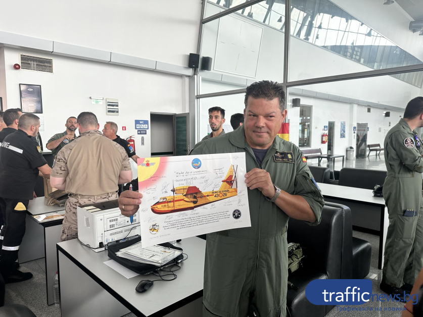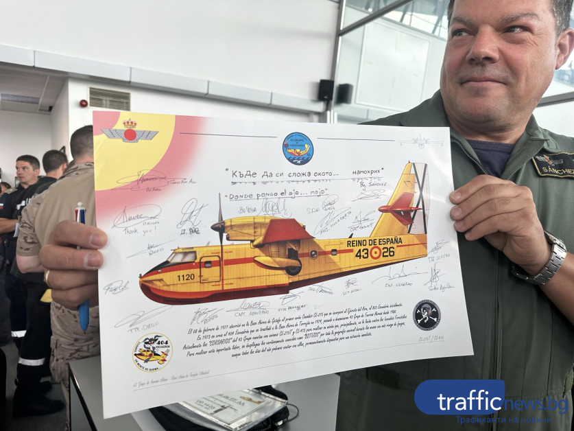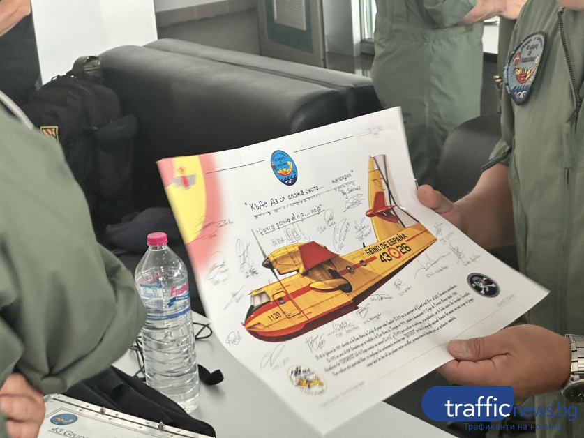 Испанците също изненада министъра с подарък, като му връчиха фотография на самолета, с който гасиха пожарите.