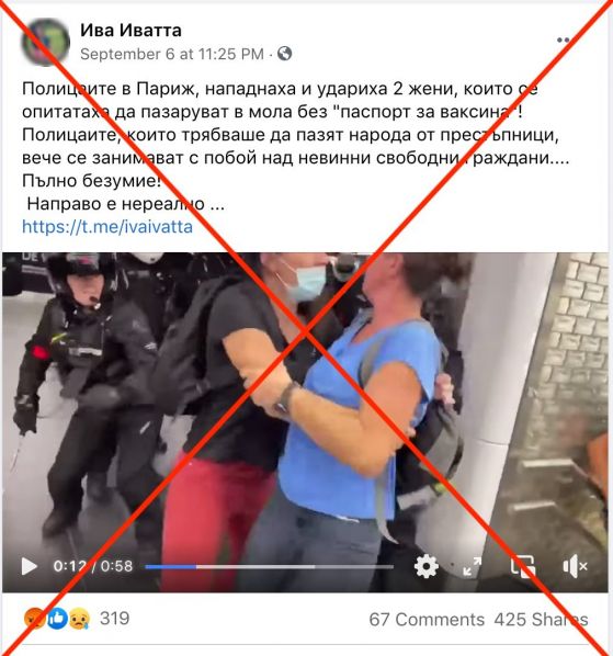 Във Facebook се популяризира информация, че служители на реда в Париж са нападнали и задържали жена, тъй като се опитвала да пазари в мол без “паспорт за ваксина ”. Публикациите съдържат малко видео, на което се вижда по какъв начин група от към 10 служители на реда тичат към две дами, нанасят няколко удара против едната и я арестуват. Читател на Factcheck.bg попита дали информацията, че дамата е била арестувана, тъй като е желала да пазари без “паспорт за ваксина ” е вярна.
