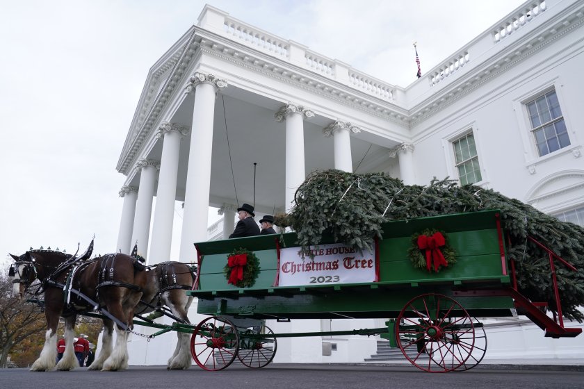 Във Вашингтон коледният сезон публично беше открит. Първата дама Джил Байдън посрещна коледното дърво, което ще бъде сложено в Белия дом. То дойде с карета с конски впряг.