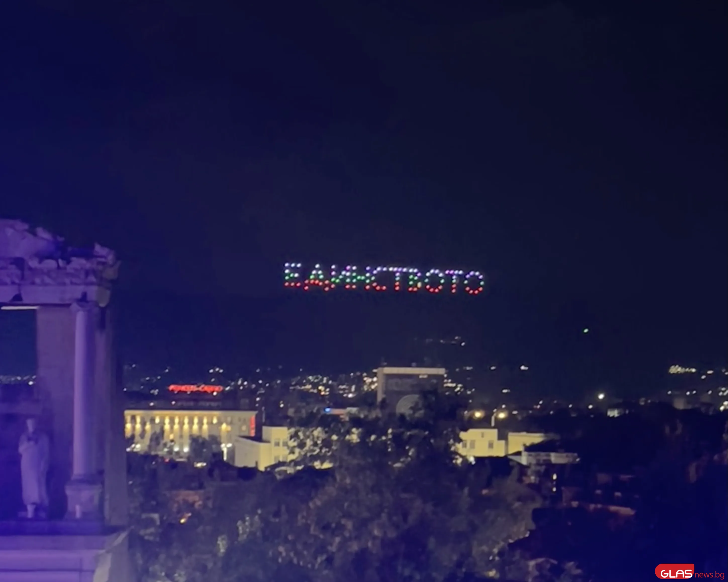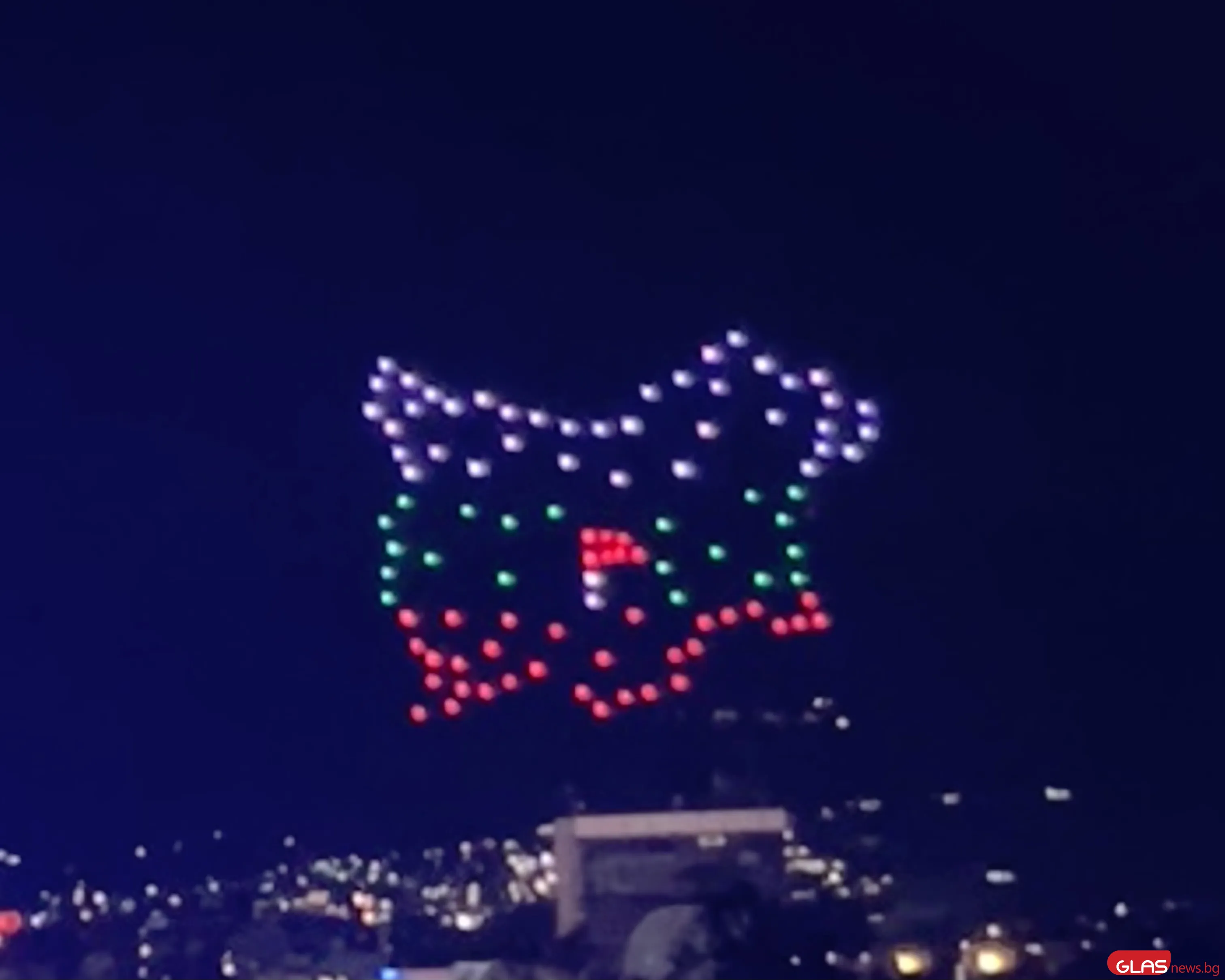 После дроновете изписаха " Пловдив " и " Единството е мощ " още веднъж в цветовете на българския трикольор.