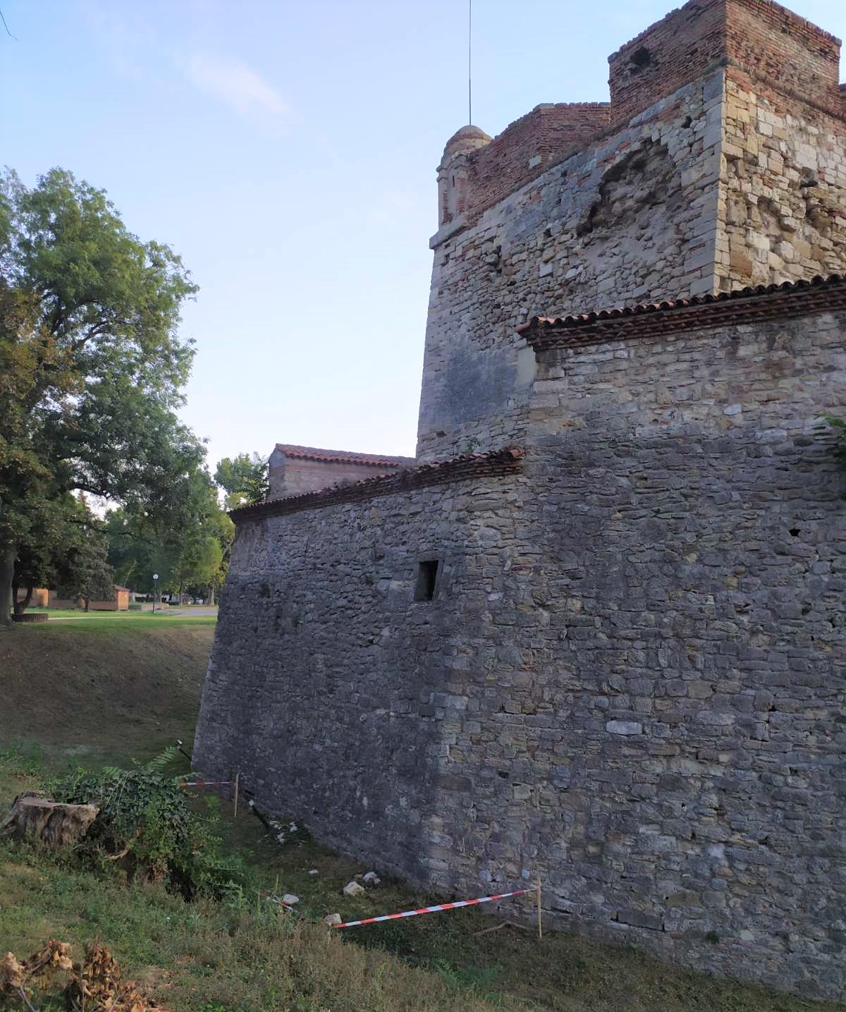 Във връзка с случая през вчерашния ден, когато част от каменната зидария от външната страна на бойна кула на средновековната цитадела падна, е реагирано неотложно. Мястото е обезопасено.