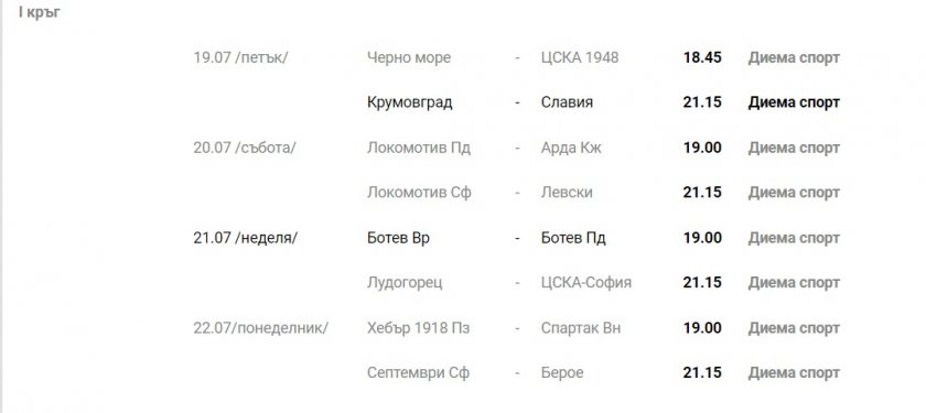Във връзка с предстоящите високи температури и желанието на футболните клубове СТК към БФС промени началните часове на срещите от Първа професионална футболна лига, както следва: