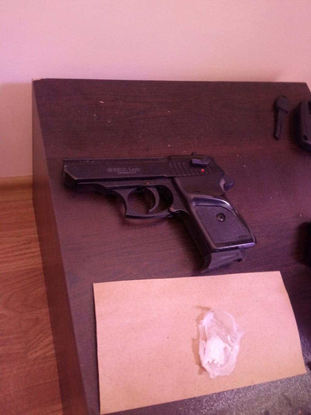 Прокуратура След осъществена инспекция и последвало претършуване на 8 декември в къща и прилежащи постройки в село Соколаре са били открити и конфискувани към 3,220 кг суха листна маса, към 12 грама бяло кристално вещество, 1 грам бяло прахообразно вещество и нерегистриран газов револвер.