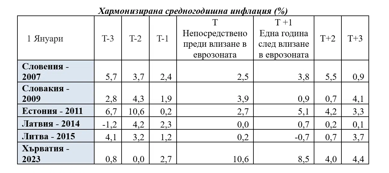 Анализът обгръща Словения, Словакия, Естония, Латвия, Литва и Хърватия. В интервала преди въвеждането на еврото в част от страните се следи умерено до мощно повишаване на инфлацията, като най-изразено е то в Естония, до момента в който в Латвия инфлацията даже е негативна или слаба. В Словения, Словакия и Хърватия придвижването на цените преди приемането на еврото остава в умерени граници.