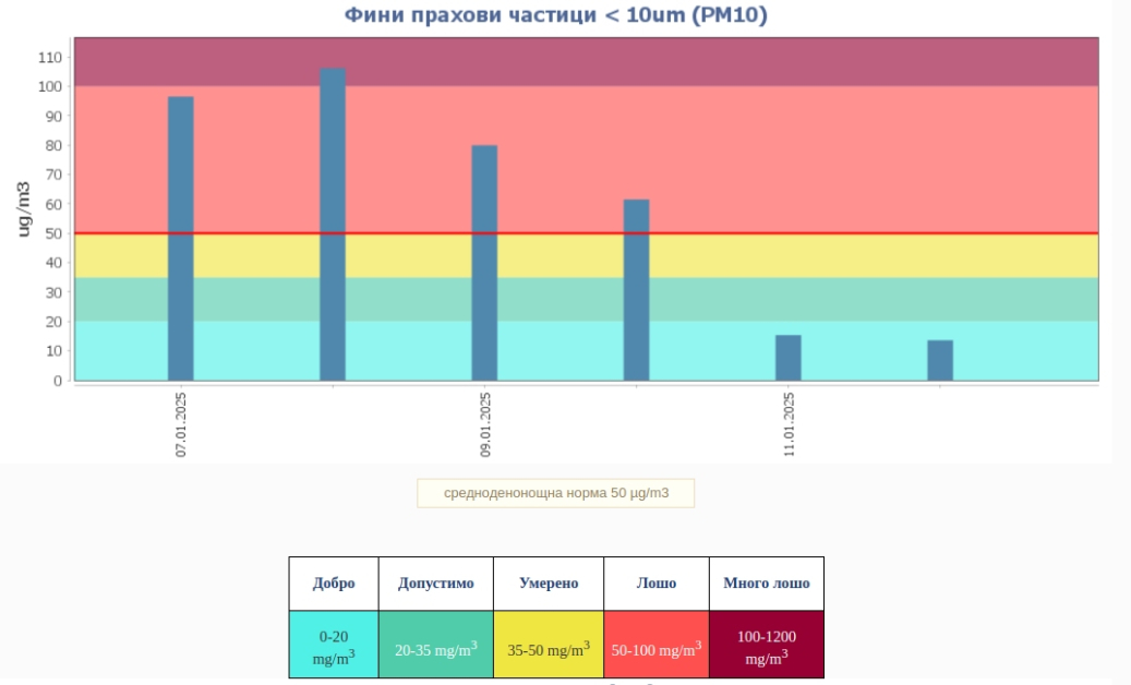 Подобни са данните за „ Тракия “, където още веднъж азотните оксиди и диоксиди са спаднали неколкократно. Намалели са и количествата бензен. Фините прахови частици, които преди дни бяха в рискови за човешкото здраве стойности, сега се движат към 10 µg/m3.
