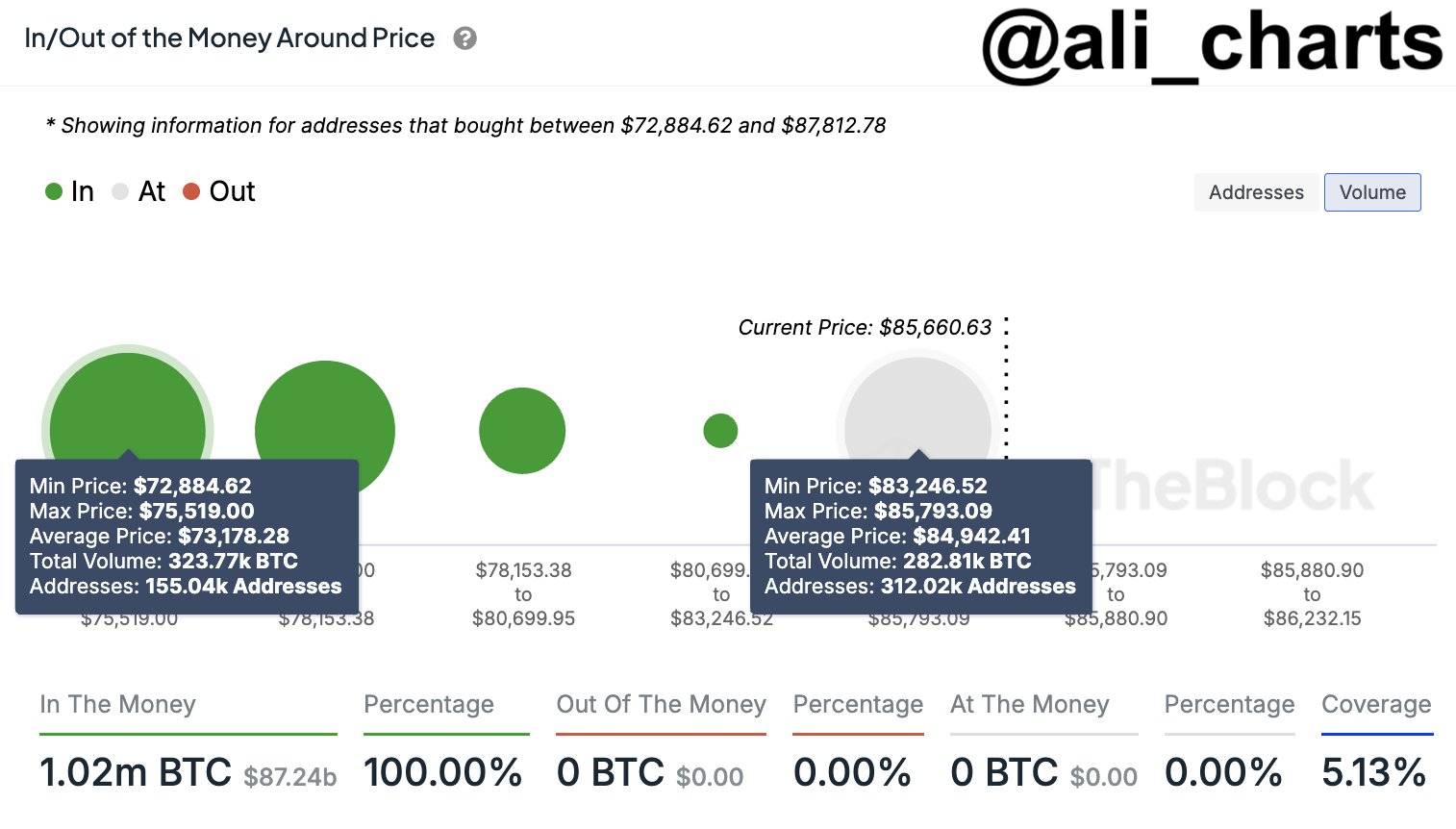 В случай на спад Мартинез зопределя две сериозни зони на поддръжка: $85,800 до $83,250 и $75,520 до $72,880. Тези равнища маркират зони за струпване на вложители и биха могли да обезпечат основа за възобновяване, в случай че цените се намалят.