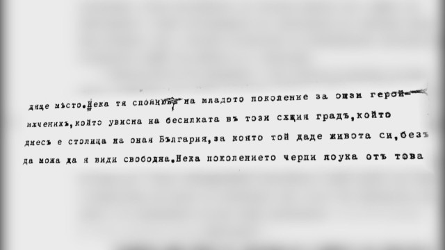 „ Нека тя споминюва на младото потомство за оня воин, който увисва на бесилката в този същия град, който през днешния ден е столица на оная България, за която той даде живота си, без да може да я види свободна “, се споделя в документа за дарението.