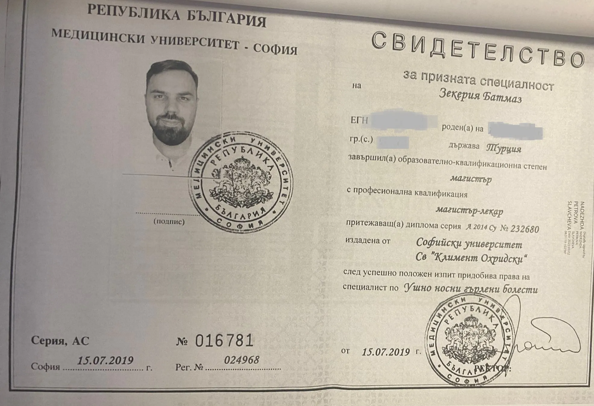 И двете истории щяха да звучат като лекарски неточности. Но не са. Те са неточности на лекар, който към момента не е приключил до дъно образованието си, само че в правосъдни каузи против себе си и в комерсиалния указател показва следното удостоверение: