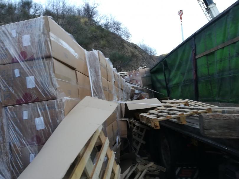 Инцидентът станал рано тази заран, когато тежкотоварен автомобил се завъртял и се блъснал в крайпътния склон. Причината - водачът изгубил ръководство над камиона, откакто едно от колелата му блокирало.