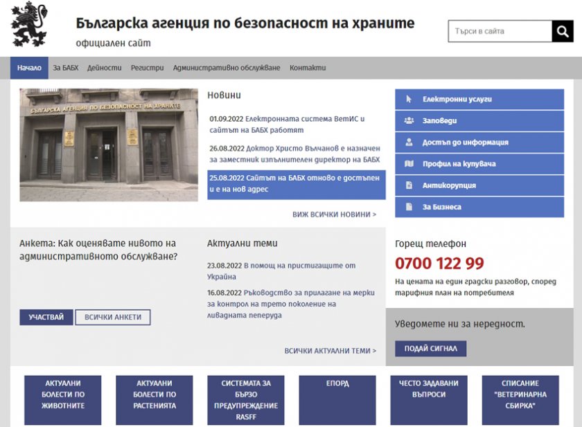 Възстановиха интегрираната осведомителна система на Българската организация по сигурност на храните (БАБХ) - ВетИС.