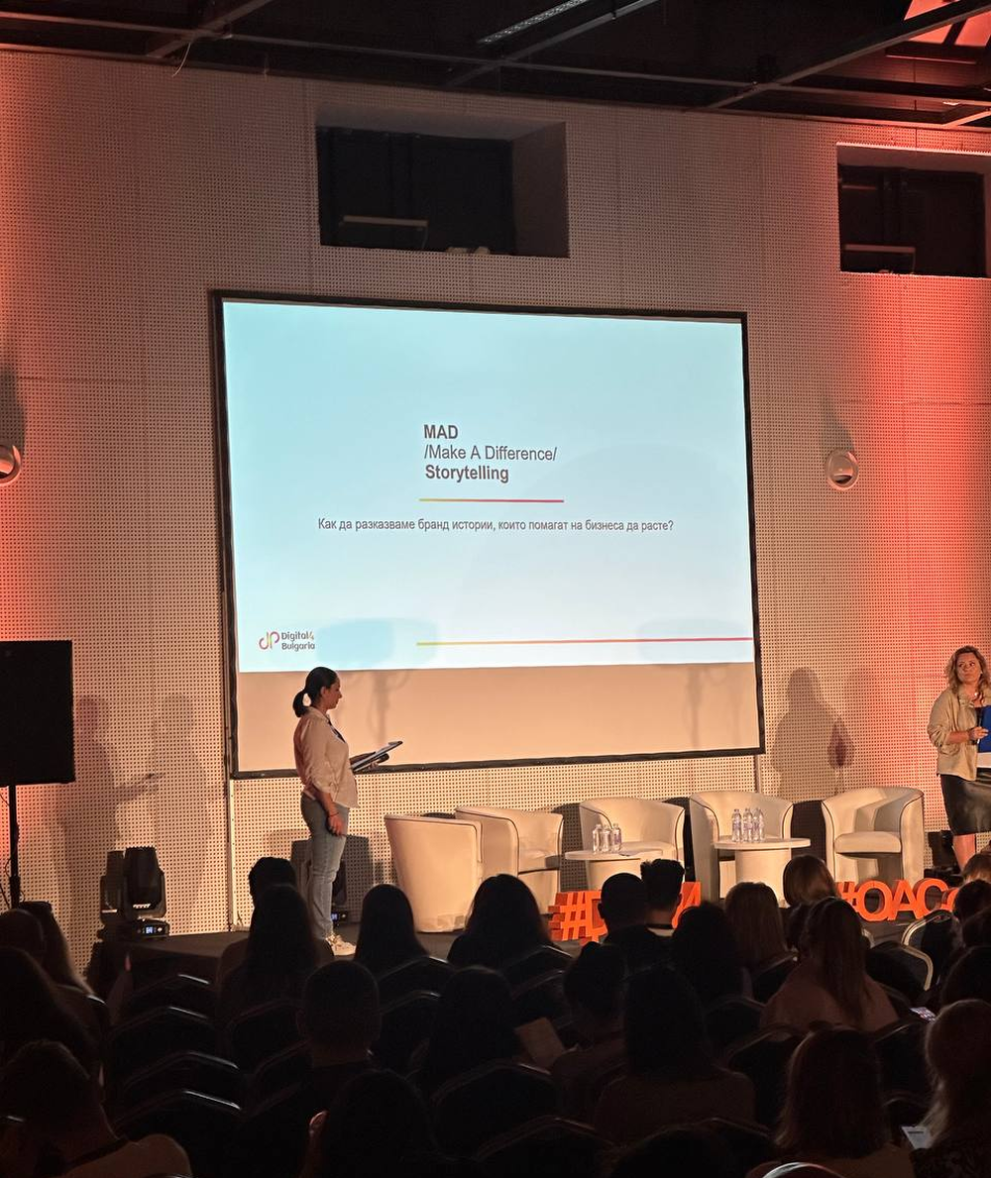 ● Закриващата лекция събра всички участници в главната зала на събитието за лекцията на Лора Крумова, дълготраен публицист и Co-Founder на MAD in BG, и Мария Йотова, публицист и Co-Founder на MAD in BG, които събраха овациите с тематиката MAD (Мake A Difference) Storytelling – Как да описваме бранд истории, които оказват помощ на бизнеса да пораства?