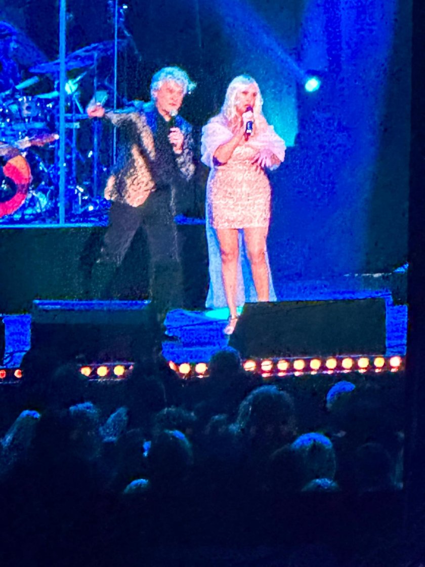 Стилът изневери и на много от дуетните половинки на изпълнителя. Наближаващата 65-ата си годишнина Кристина Димитрова беше избрала лъскава рокличка, която едвам покриваше най-милото й. И въпреки да е в супер форма за годините си, можеше да заложи на нещо по-малко крещящо.