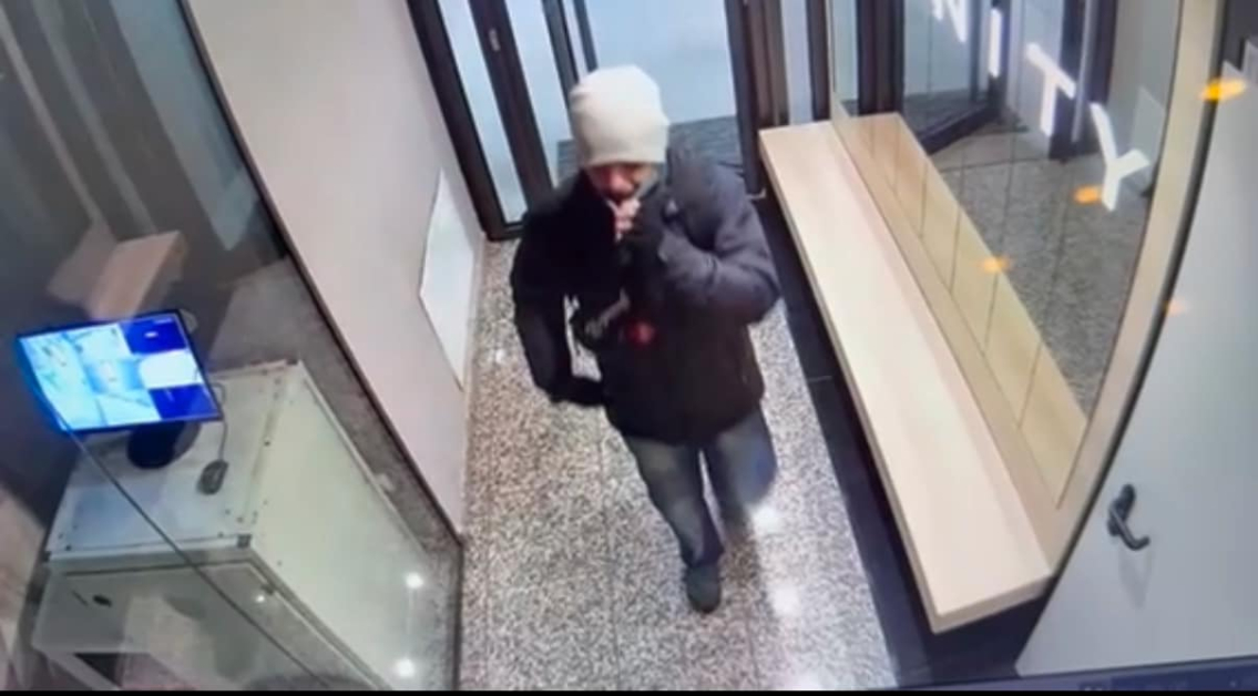 Мъжът е сниман от видеокамери за наблюдаване, сложени в постройката.