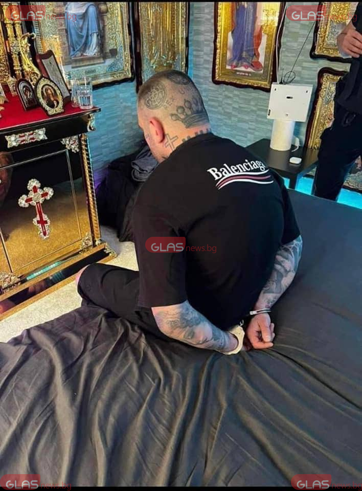 Междувременно GlasNews.bg разполага с фрагменти от задържането на любовника на Радева - Георги Семерджиев. На една от фотосите виждаме Семерджиев с сложени белезници в жилището в кв. " Лозенец ", където е открит от спецотряда " Кобра " след злополуката. Прави усещане интериорът на стаята - по стените има доста икони, а на шкафчето против Семерджиев - кръст. Самият той е изрисуван с татуси, които изобразяват кръстове. Малко под гърдите си е татуирал надписа " Бог ".