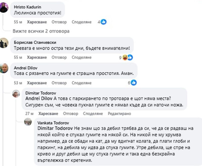 Коментарите във Facebook са като на обществено четене на стенограмите от Народното събрание – доста звук и съвсем никакъв смисъл. Едни желаят санкция и конфискация, други – ножове и реванш. И трети се майтапят с тревата, тъй като в действителност наподобява остра.