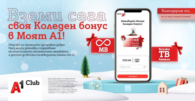 Този декември несъмнено имате шанс, тъй като в символ на признателност А1 подарява на своите клиенти неограничени мегабайти на оптималната скорост и безвъзмезден достъп до всички ТВ канали. До края на годината можете да се възползвате от тази промоция или да зарадвате някой непосредствен като му подарите еднократния бонус.