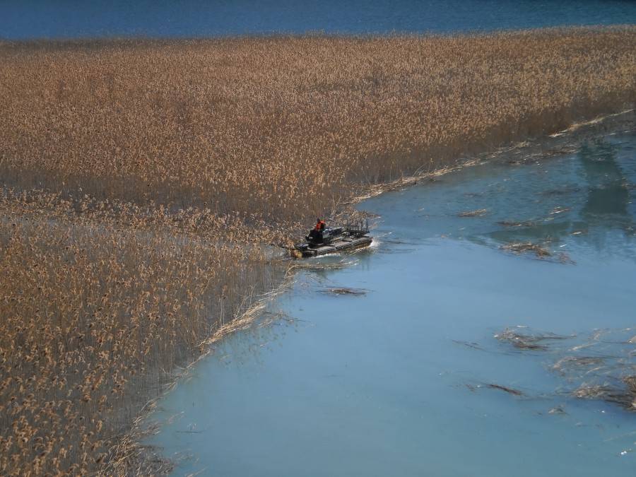 Режат тръстиката в хвостохранилище Ерма река, за да не мъти водата