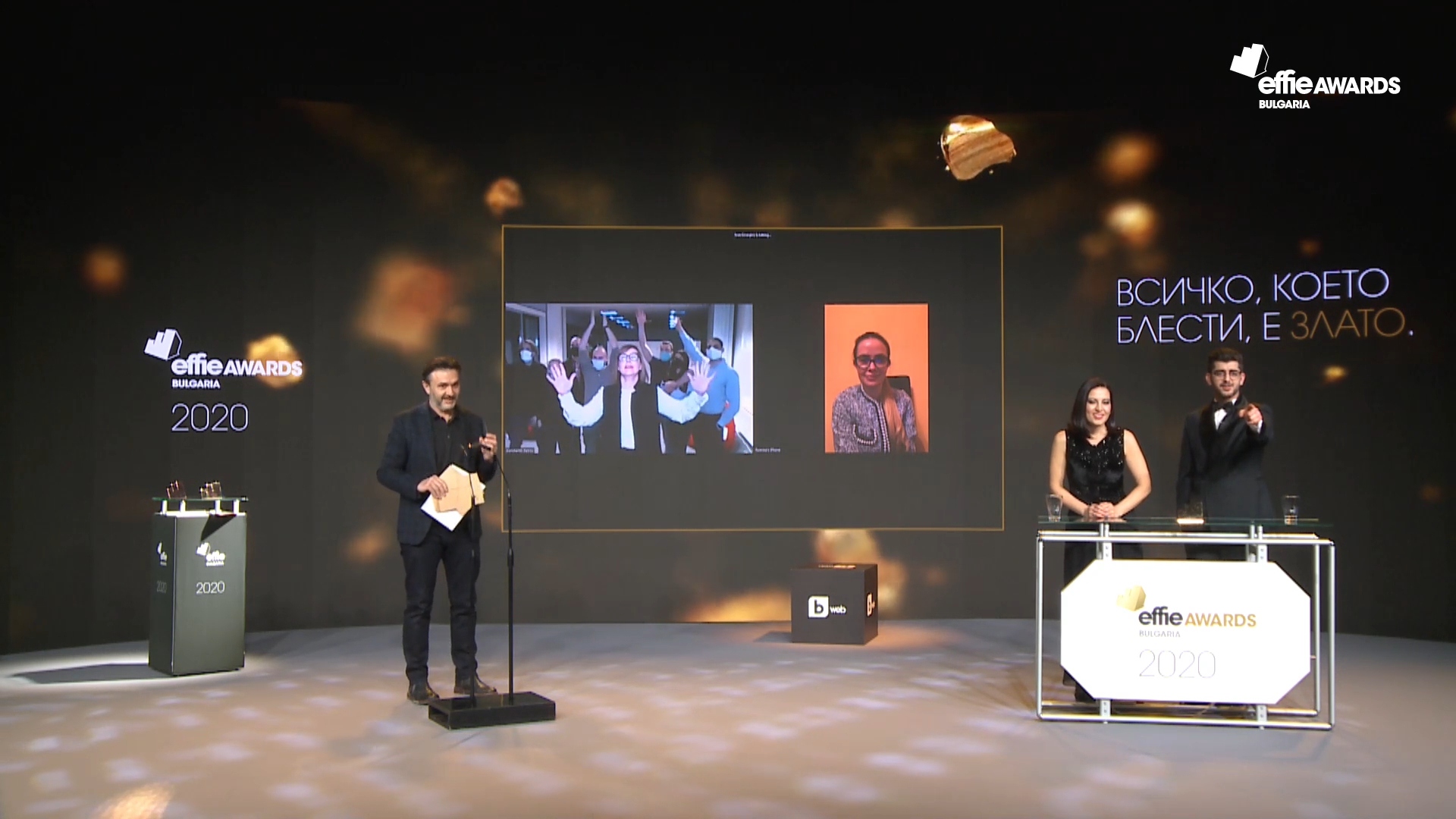 С общо осем награди - три златни, четири сребърни и една бронзова - Noble Graphics беше оповестена за „ Най-ефективна организация “ на 2020 година. Kaufland България завоюва оценката „ Най-ефективен рекламодател “, с помощта на извоюваните една златна и две сребърни награди. Големите спечелили бяха оповестени от Ненад Лозович, Председател на Българската асоциация на информационните организации и на Организационния комитет на Effie България.