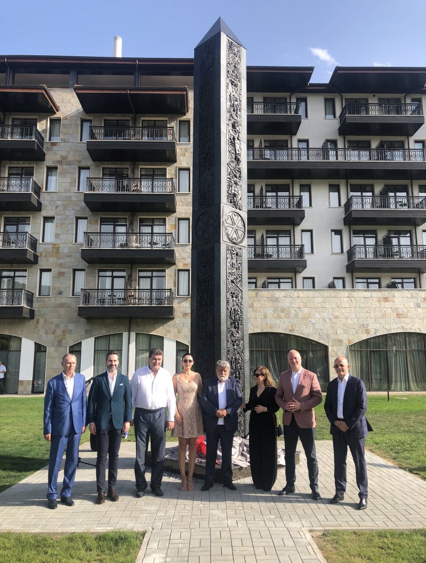 Вежди Рашидов извая неповторим осемметров обелиск от бронз и гранит, който бе подложен пред новия хотел “Хаят ” в Правец. Паметникът бе открит през днешния ден незабавно след освещаването на хотела в наличието на ръководителя на Народното събрание Росен Желязков, на домакина Валентин Златев, на доста посетители, измежду които представители на туристическия отрасъл от България и чужбина, кметове и създатели.