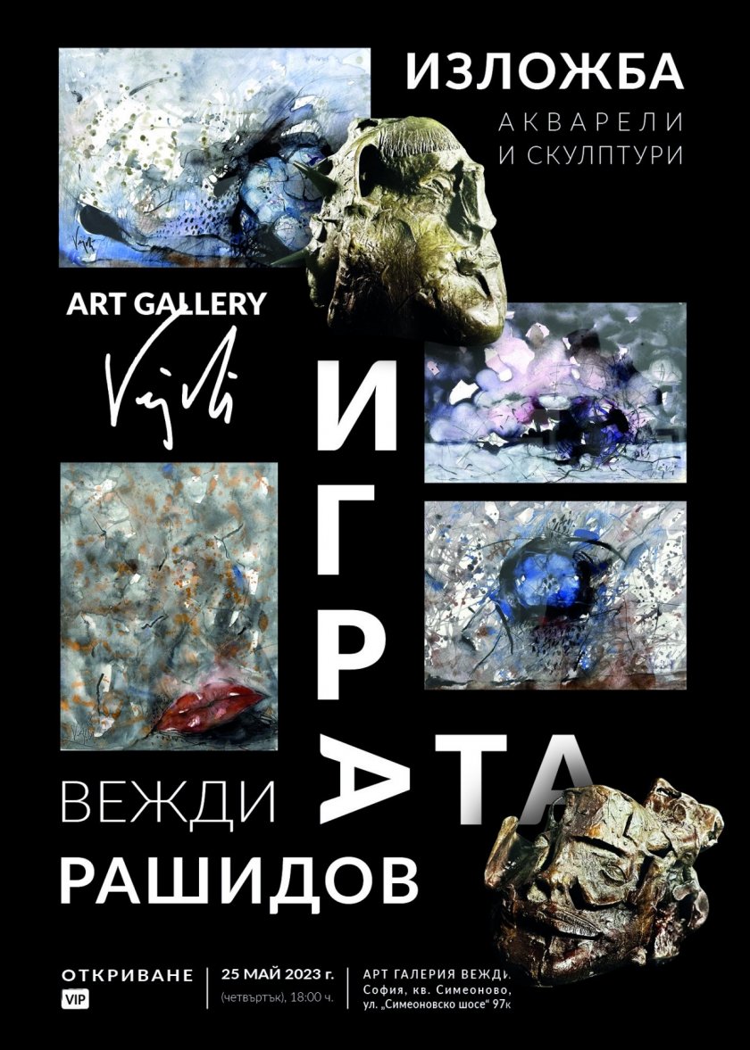 Вежди Рашидов подреди галерия с най-новите си акварели и статуи. Откриването е на 25 май – четвъртък, в 18 часа в Арт изложба Vejdi на ул. „ Симеоновско шосе “ 97 к в София. Във ВИП артпространството са експонирани 20 акварела и 4 статуи на именития създател.