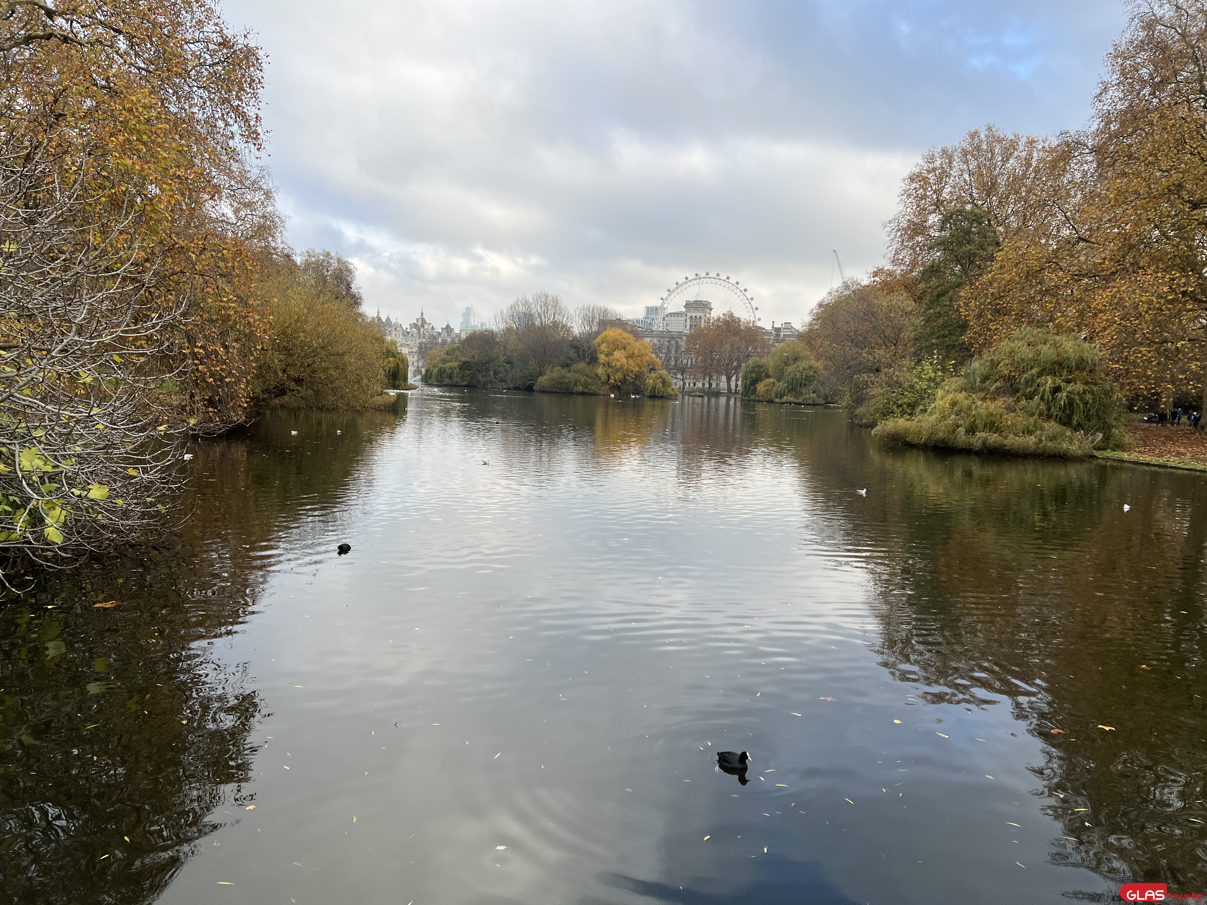 От моста, който пресича езерото, се открива невероятна панорама към Бъкингамския замък, всред дървета и фонтани.